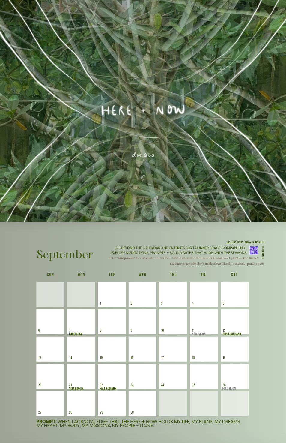 INCLUDES 1 INNER SPACE GRAPHIC + 1 JOURNALING PROMPT / MONTH + PHASES OF THE MOON + KEY DATES + A QR CODE INTO 🚀🌿🌸🎵 THE INNER SPACE UNIVERSE'S SEASONAL COMPANION COLLECTION FOR GUIDED MEDITATIONS, JOURNALING PROMPTS, SOOTHING SOUND BATHS + MORE 💕