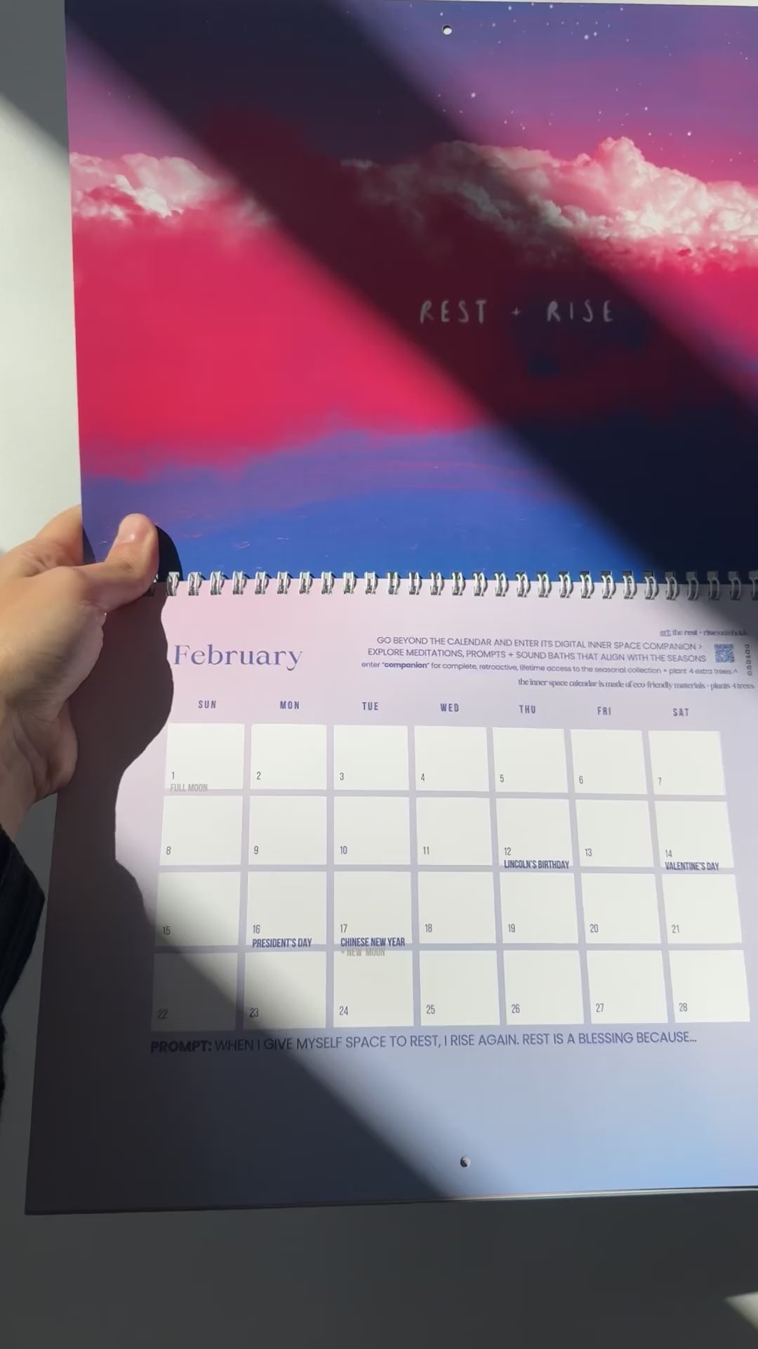 INCLUDES 1 INNER SPACE GRAPHIC + 1 JOURNALING PROMPT / MONTH + PHASES OF THE MOON + KEY DATES + A QR CODE INTO  🚀🌿🌸🎵 THE INNER SPACE UNIVERSE'S SEASONAL COMPANION COLLECTION FOR GUIDED MEDITATIONS, JOURNALING PROMPTS, SOOTHING SOUND BATHS + MORE 💕